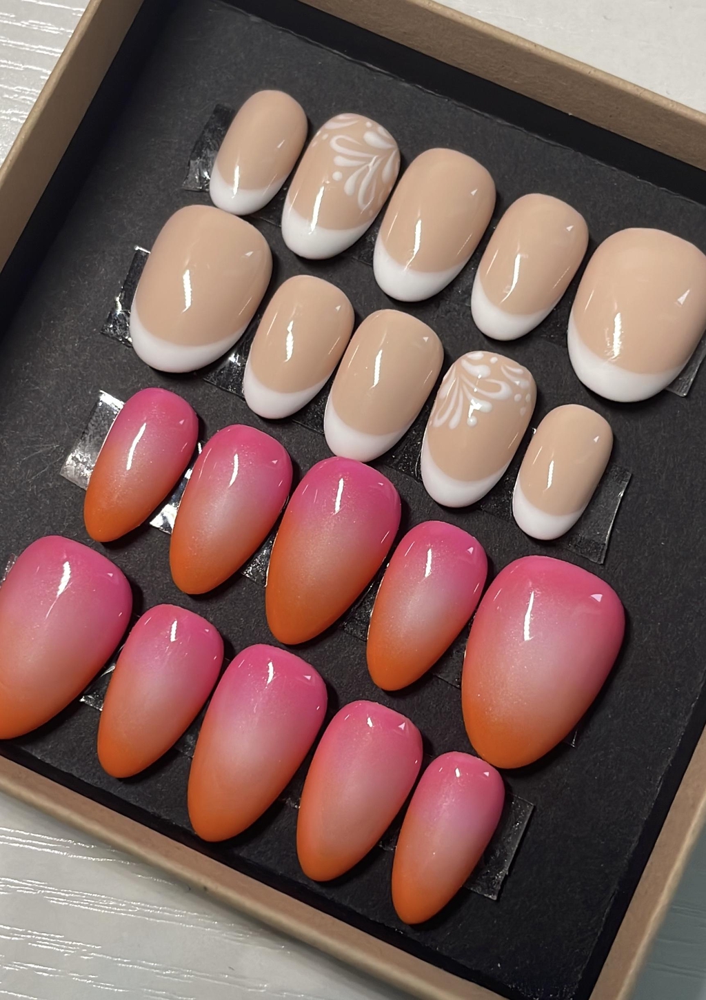 Retrouve ici tous les sets de press on imaginé en collaboration avec mes client.e.s ! Tu peux t'en servir d'inspiration pour ta propre commande (à noter que je ne reproduis jamais exactement le même set).